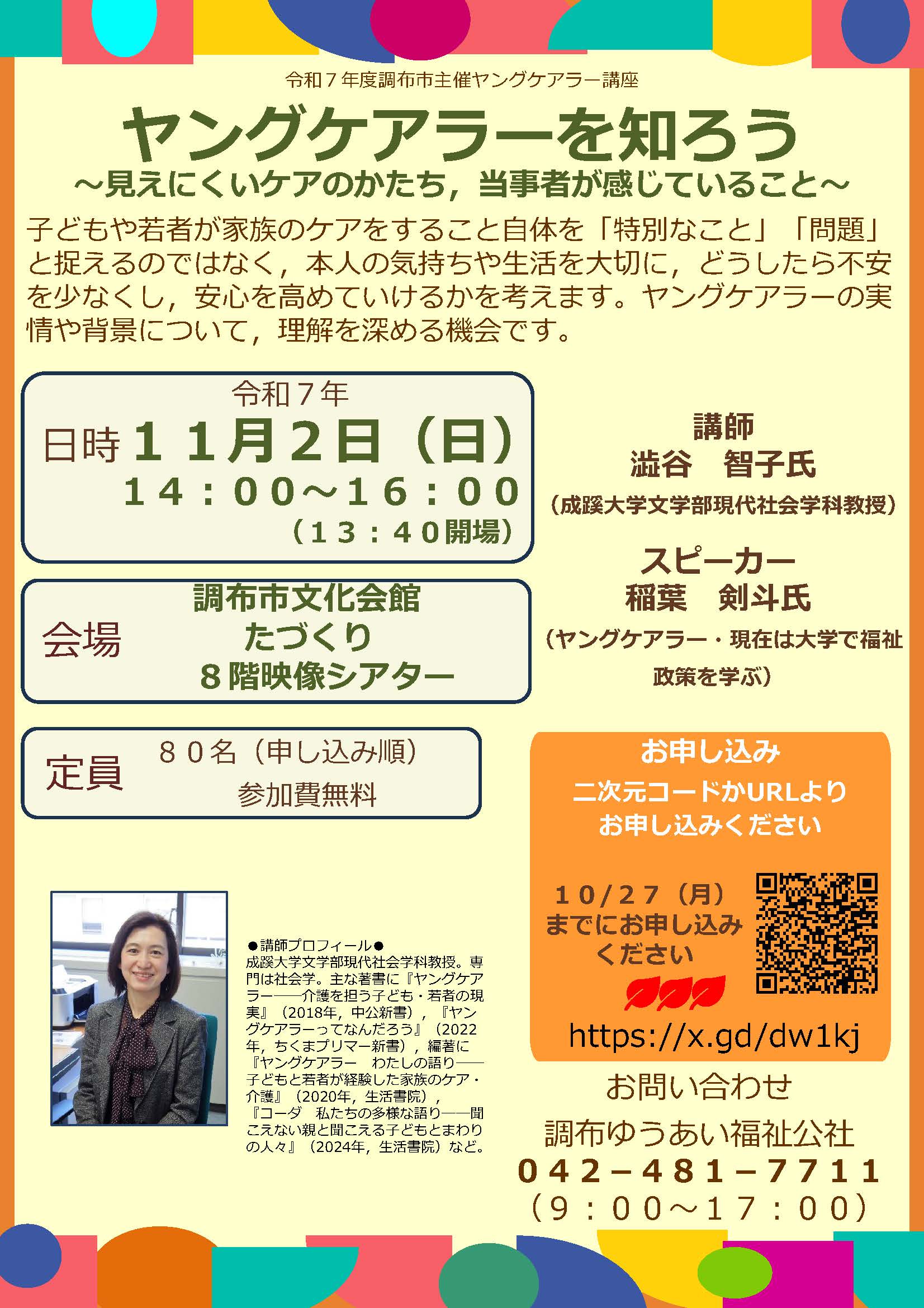 ヤングケアラー講座 『ヤングケアラーを知ろう』を開催します