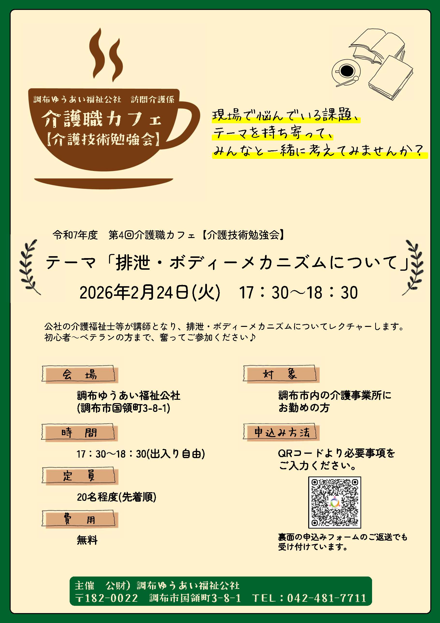 2月24日 介護職カフェのお知らせ ※介護職員向け講座