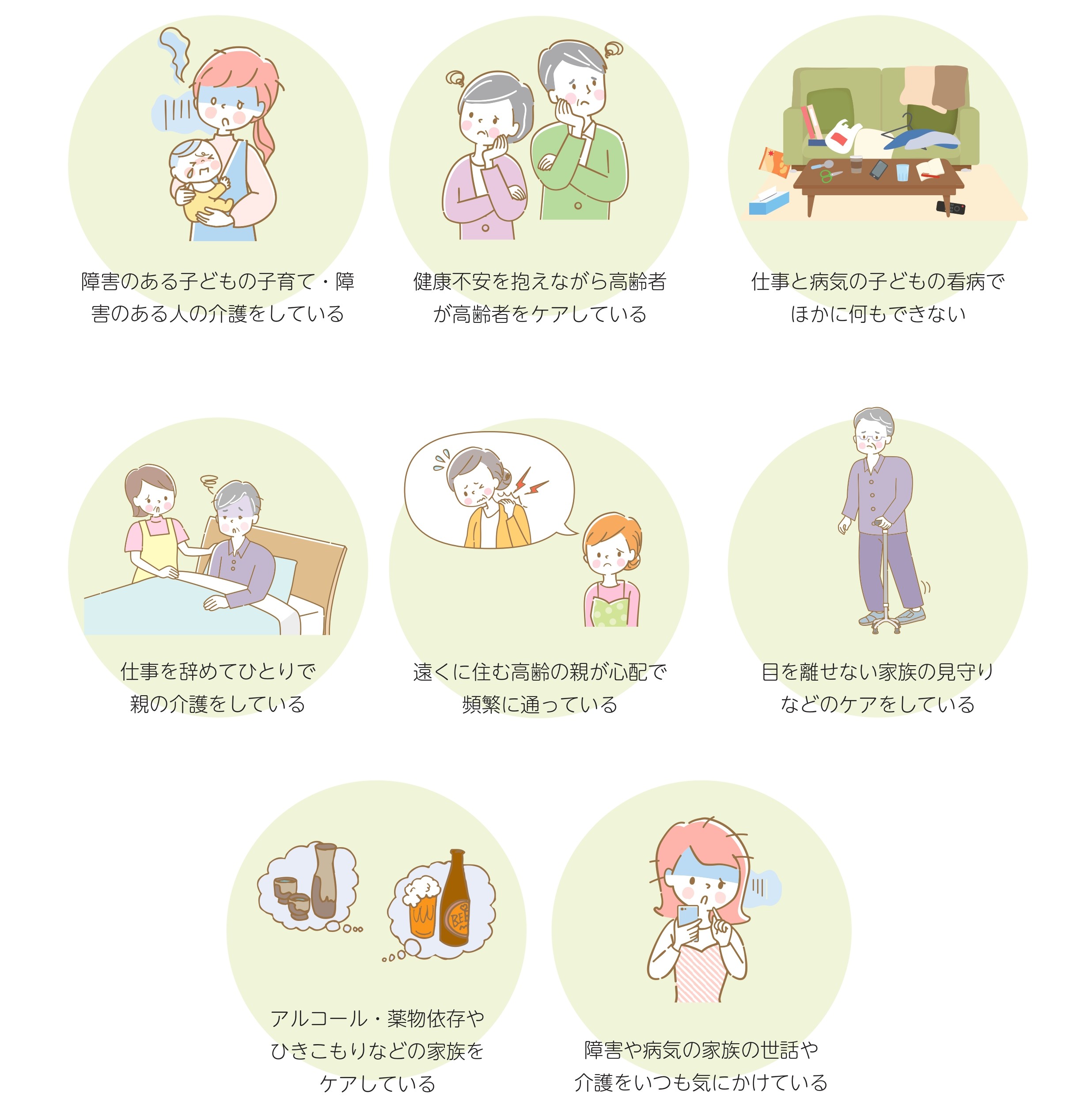 ケアラー本人やご家族、地域の方、関係機関など、どなたからでも相談を受け付けています。